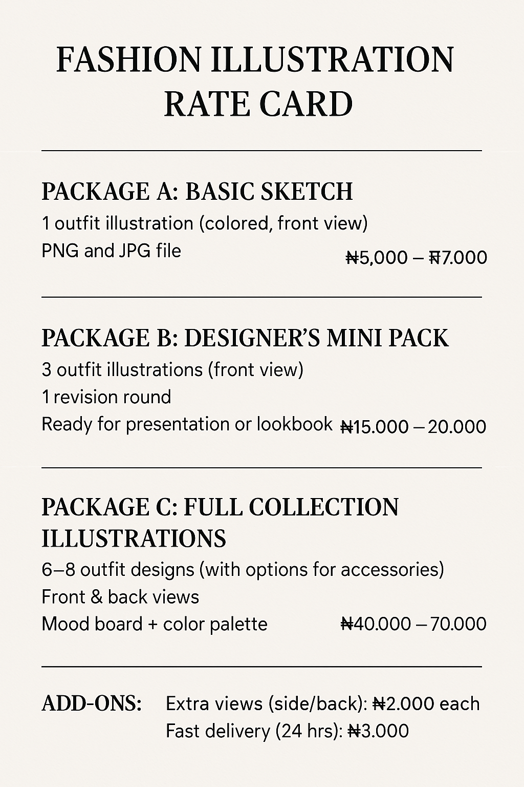 Offer paid custom sketches and digital illustrations to fashion clients.